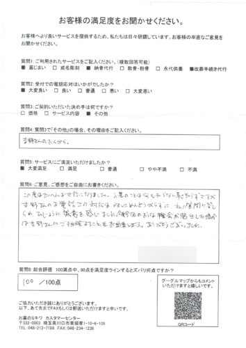 東京都70代男性 墓じまい口コミ・評価 満足度100点